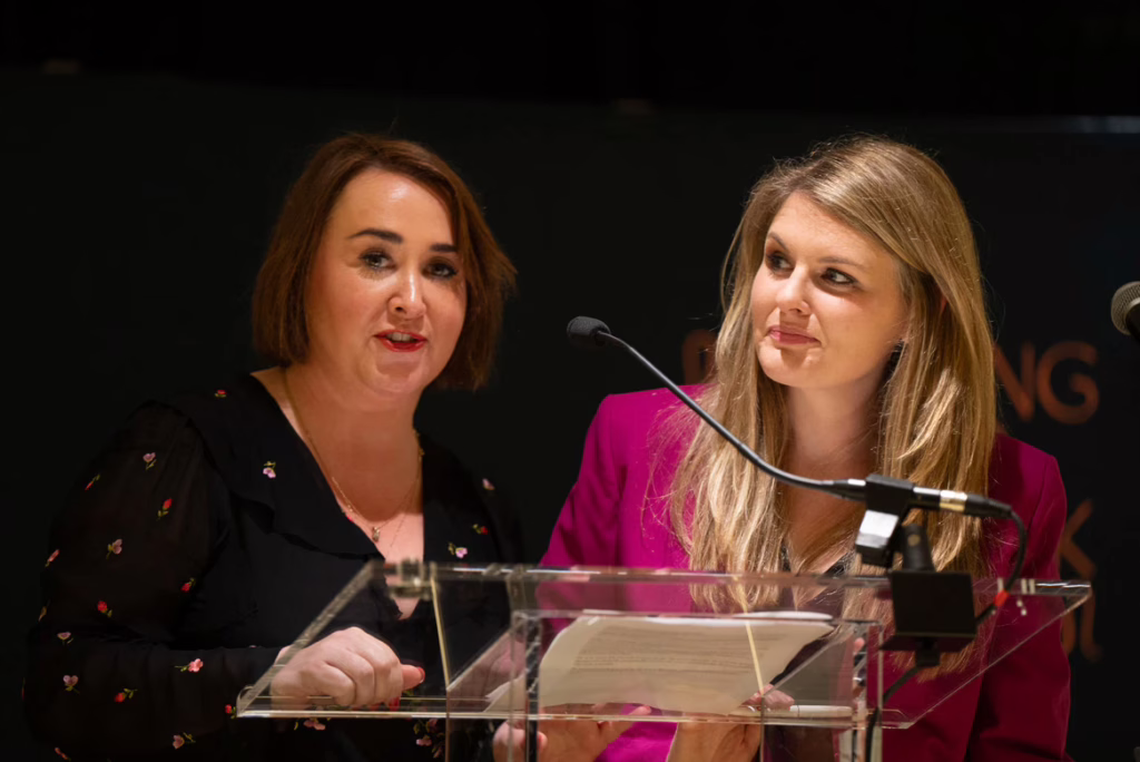 Charlotte Burns and Julia Halperin of The Burns Halperin Report speak at the Making Their Mark Forum. Photo: Stephen Voss / CKA